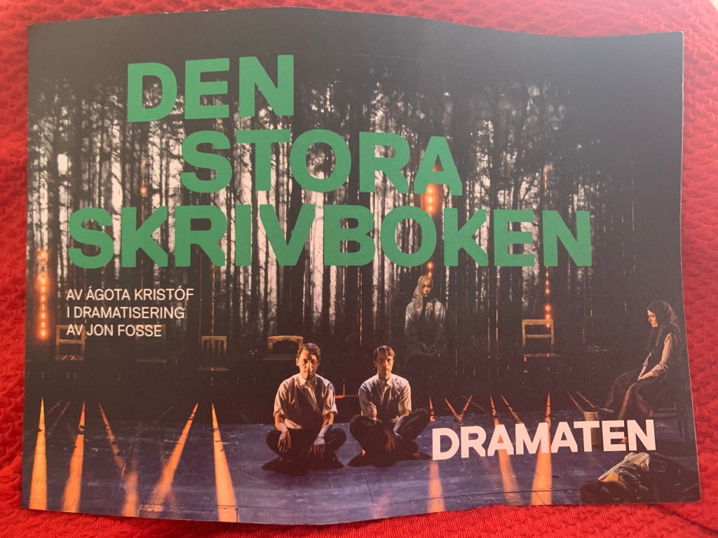 Boka biljett till höstens föreställningar – och/eller läs boken! Så bra båda två! Jag rekommenderar även skolor att köpa in föreställningar för sina elever i årskurs 9 och gymnasiet. Pjäsen är kort, tydlig (inga luckor eller hopp i tiden), lärorik om krig och hanterbar tack vare Kristofs berättarteknik, som är bevarad i Fosses dramatisering och välregisserad av Sofia Adrian Jupither.