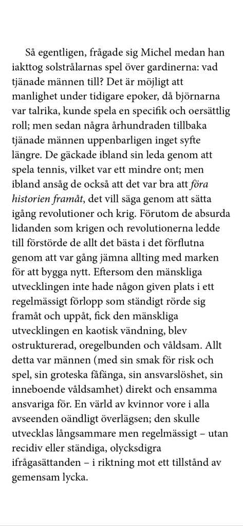 Houllebecq låter Michel ha feministiska tankar: